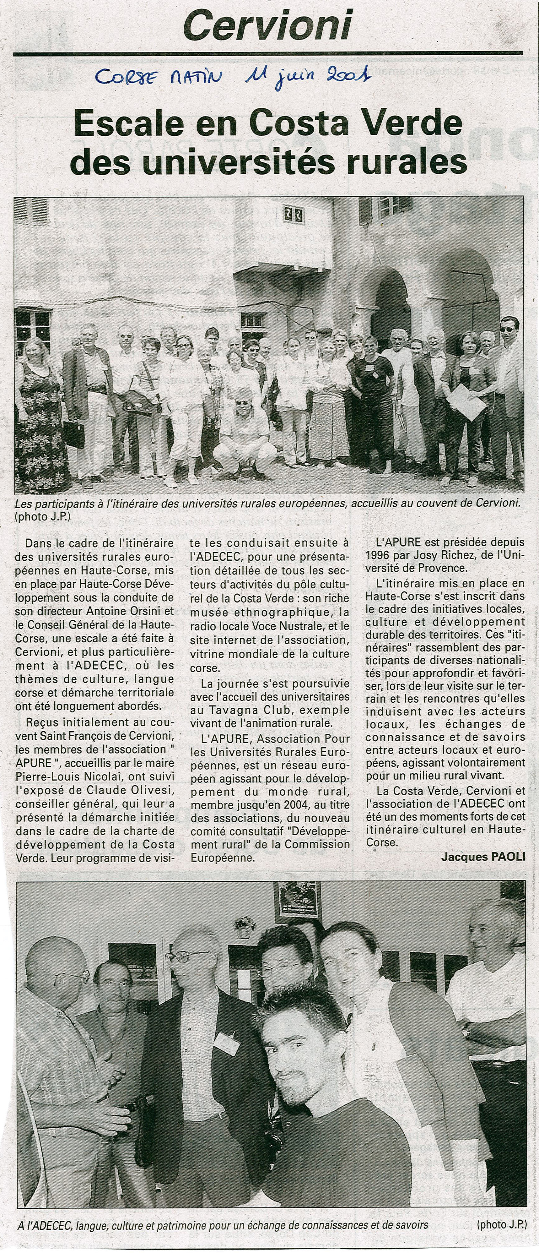 Etape culturelle à Cervioni pour l'association Cor
