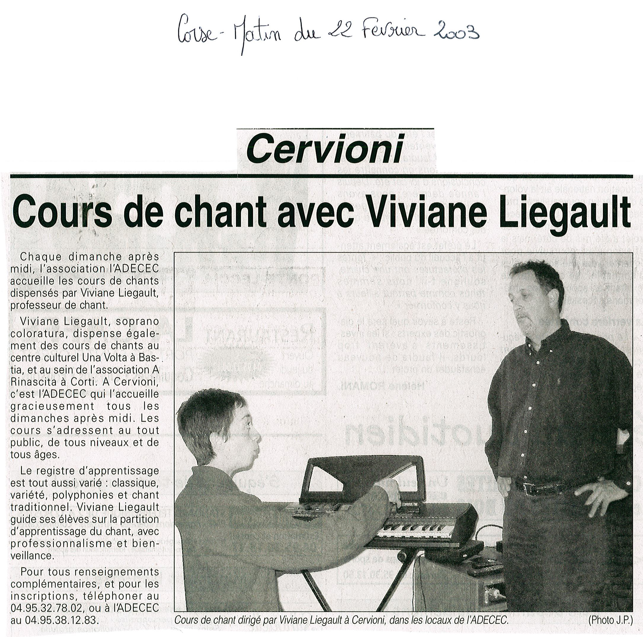 Cours de chant avec Viviane Liegault