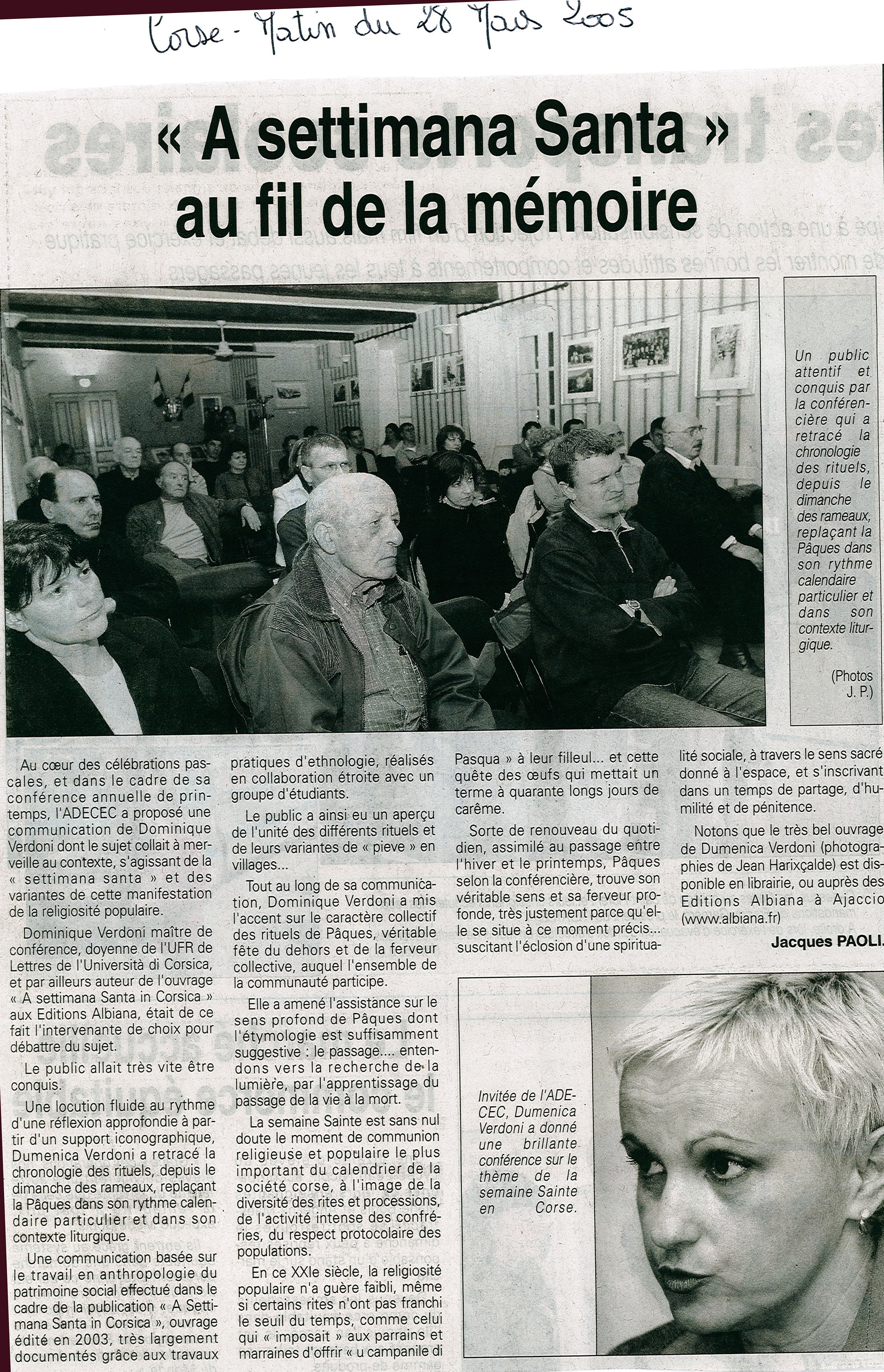 Dumenica Verdoni, a settimana santa 2