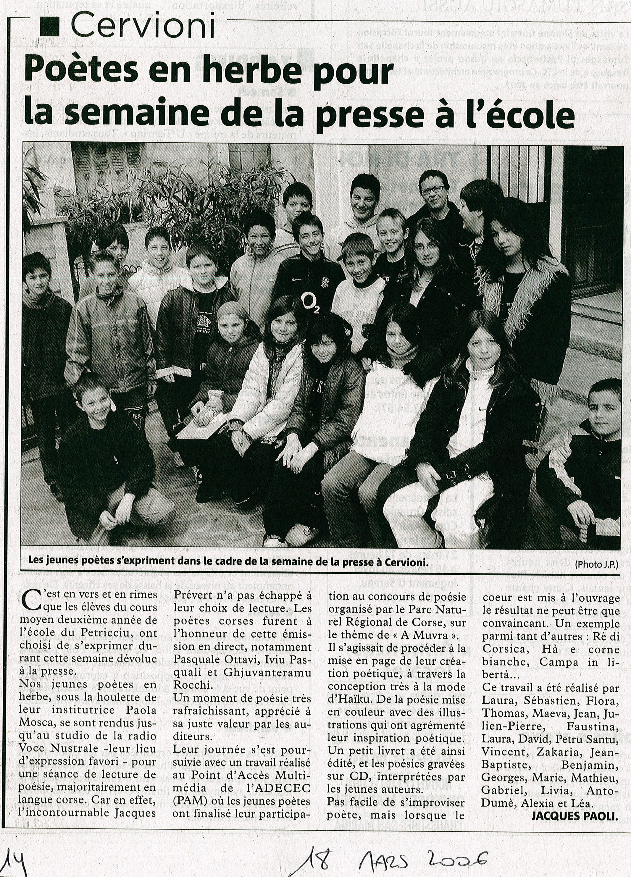 Poètes en herbe pour la semaine de la presse à l'é