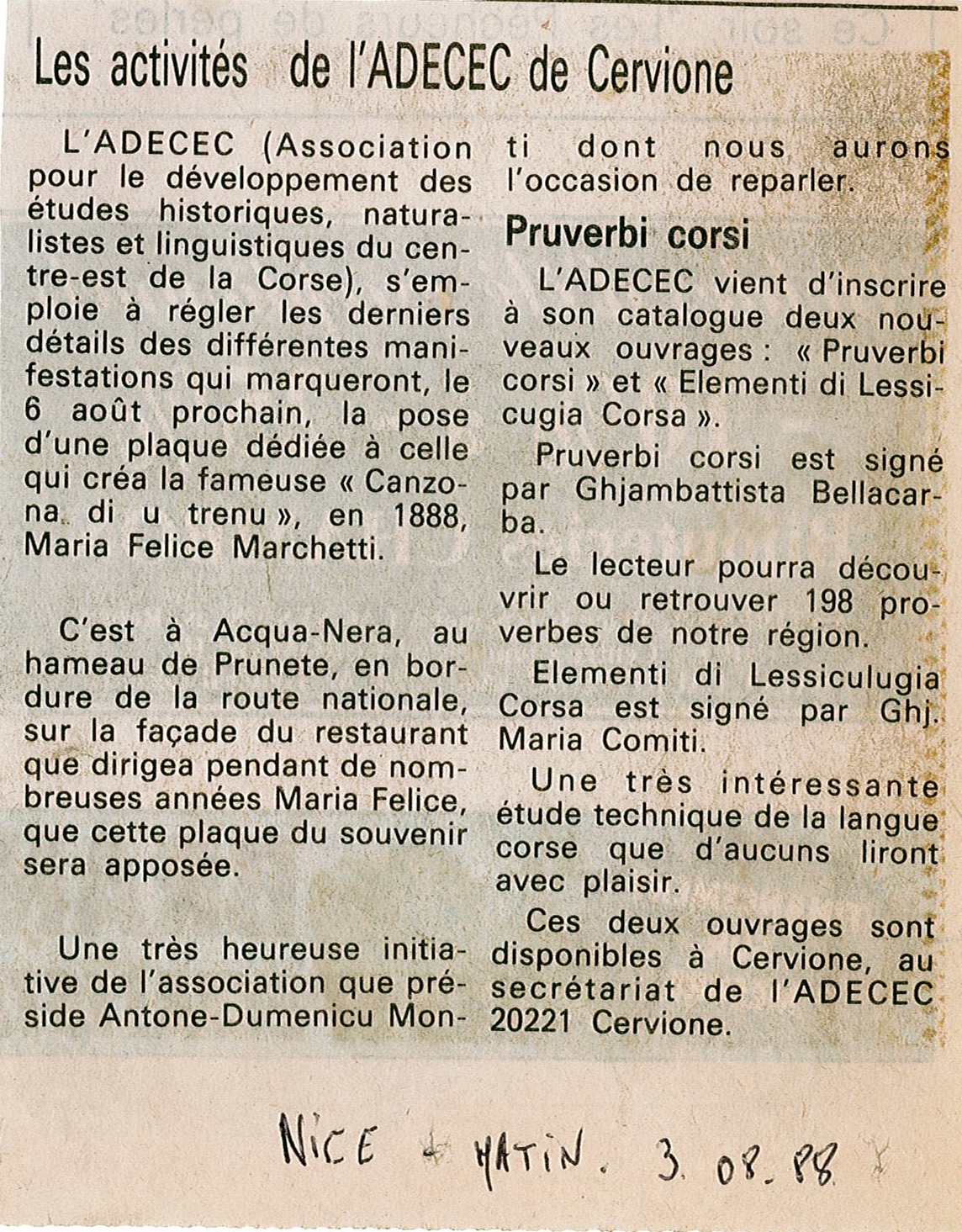 Parler Corse et défendre son clocher