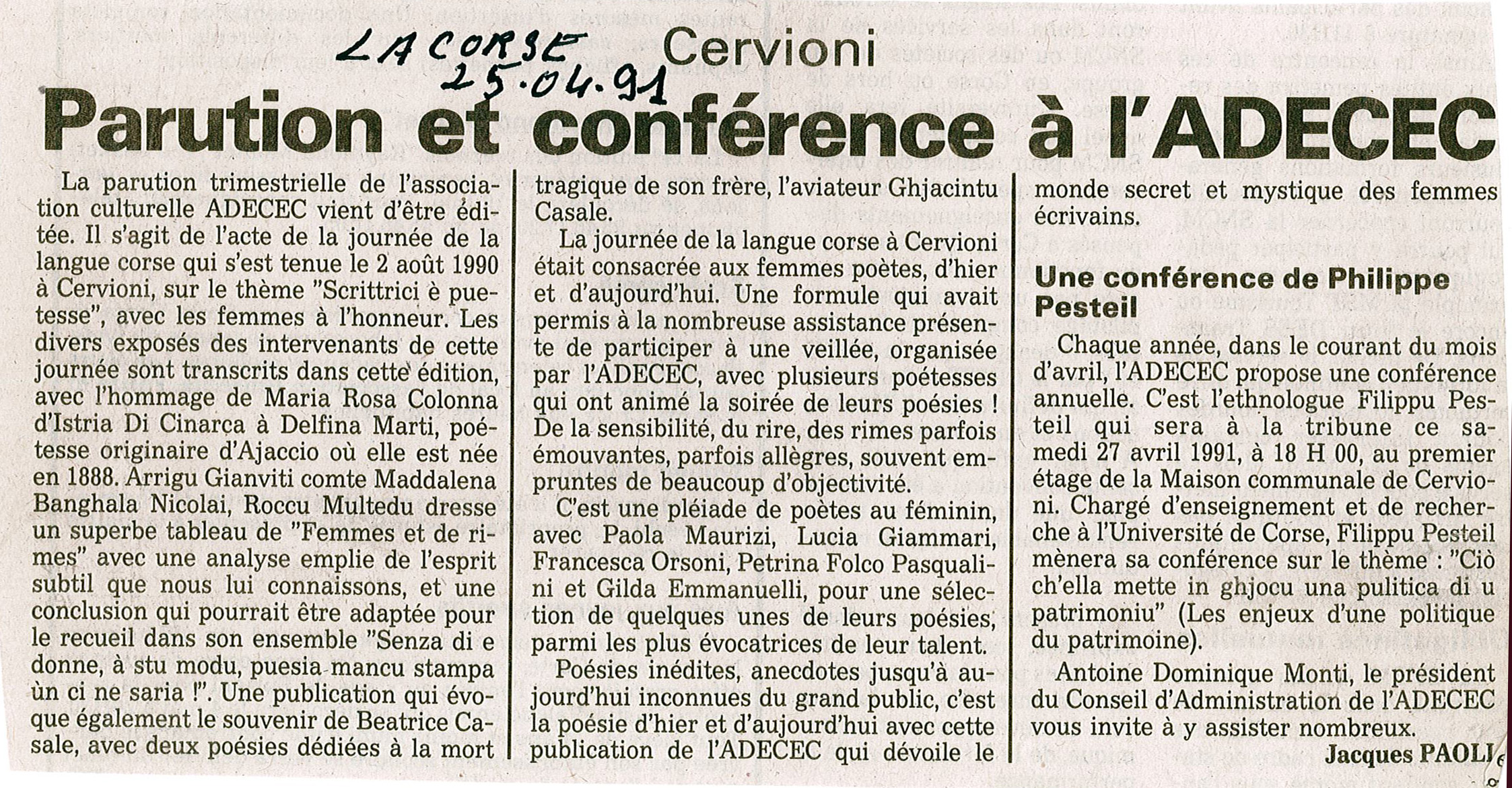 Le petit bastiais 10 avril 1985