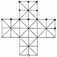 Si pò ghjucà da per sè cù nove pedine poste capu nanzu.